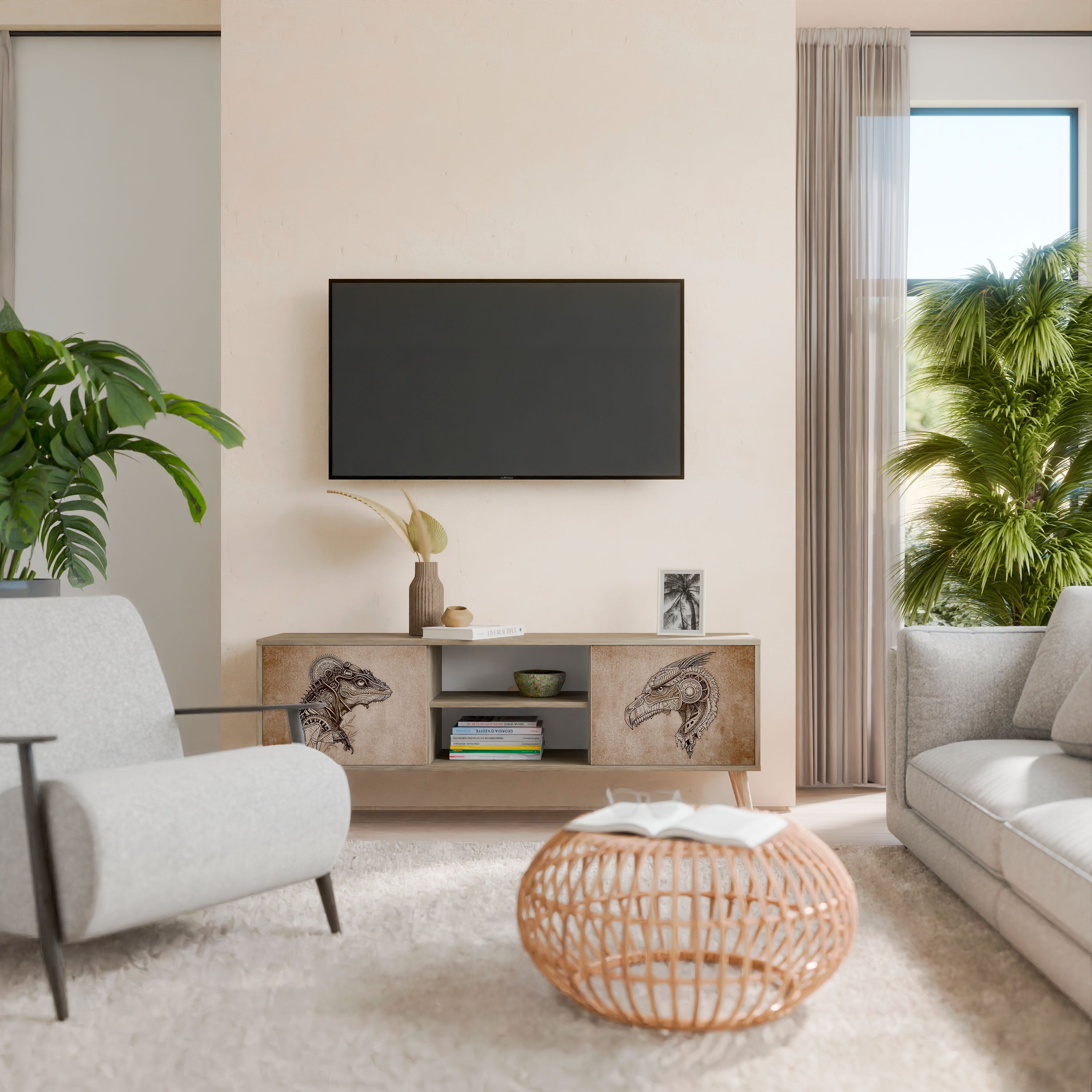 This TV cabinet not only embodies elegance but also offers exceptional functionality. Its thoughtful design provides ample space for electronic devices and other items, helping you maintain order and harmony in your home. With its subtle design and neutral colors, this cabinet effortlessly fits into a variety of interior styles, from minimalist to more traditional arrangements.