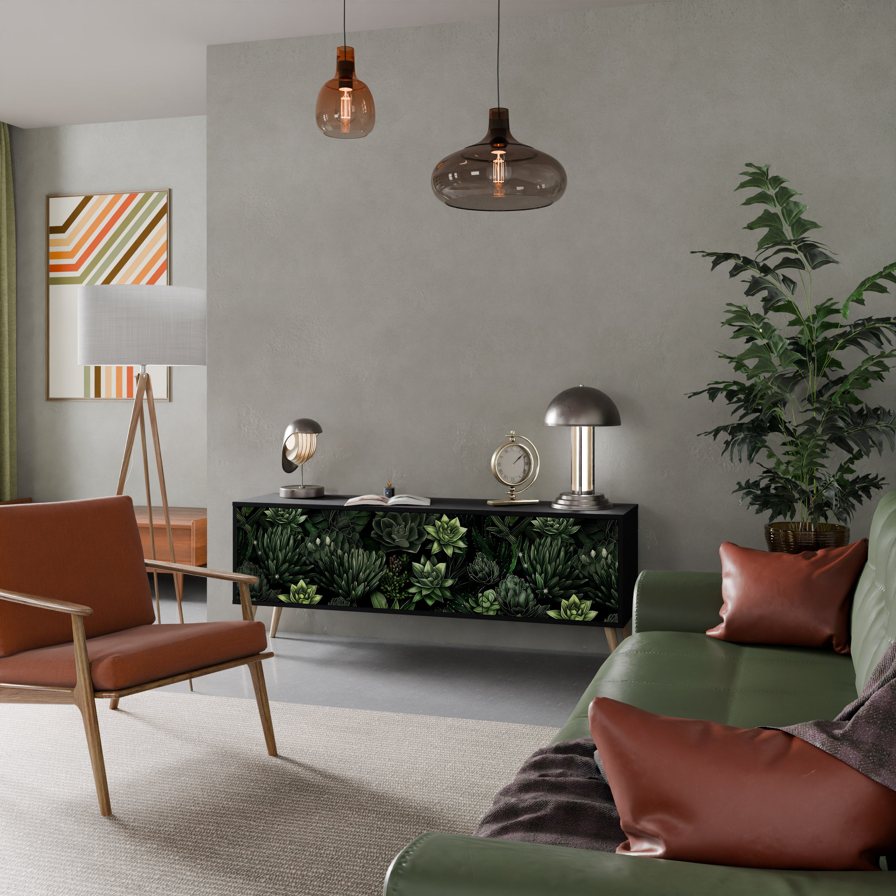 SUCCULENT JUNGLE 3-Door TV Stand in Black Finish