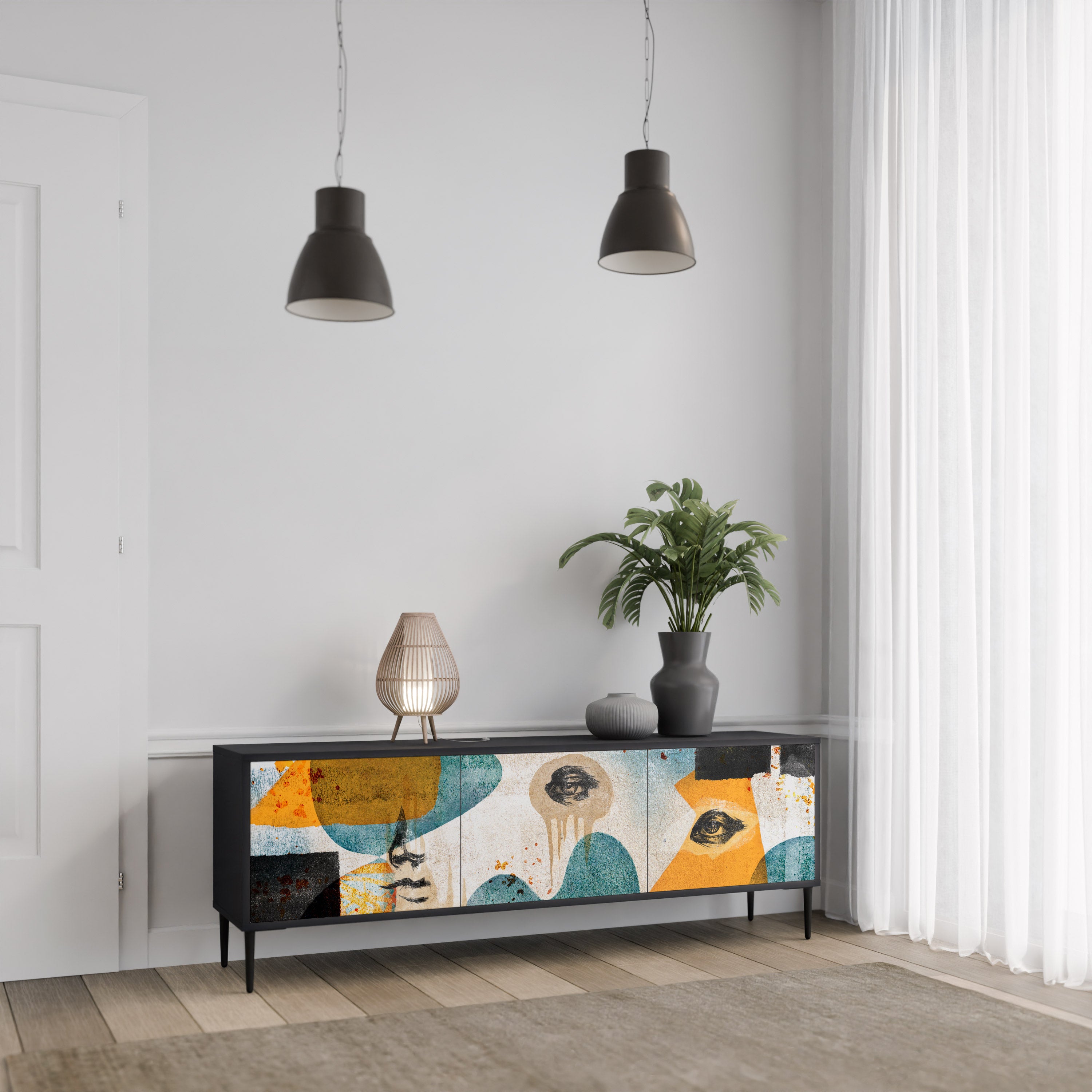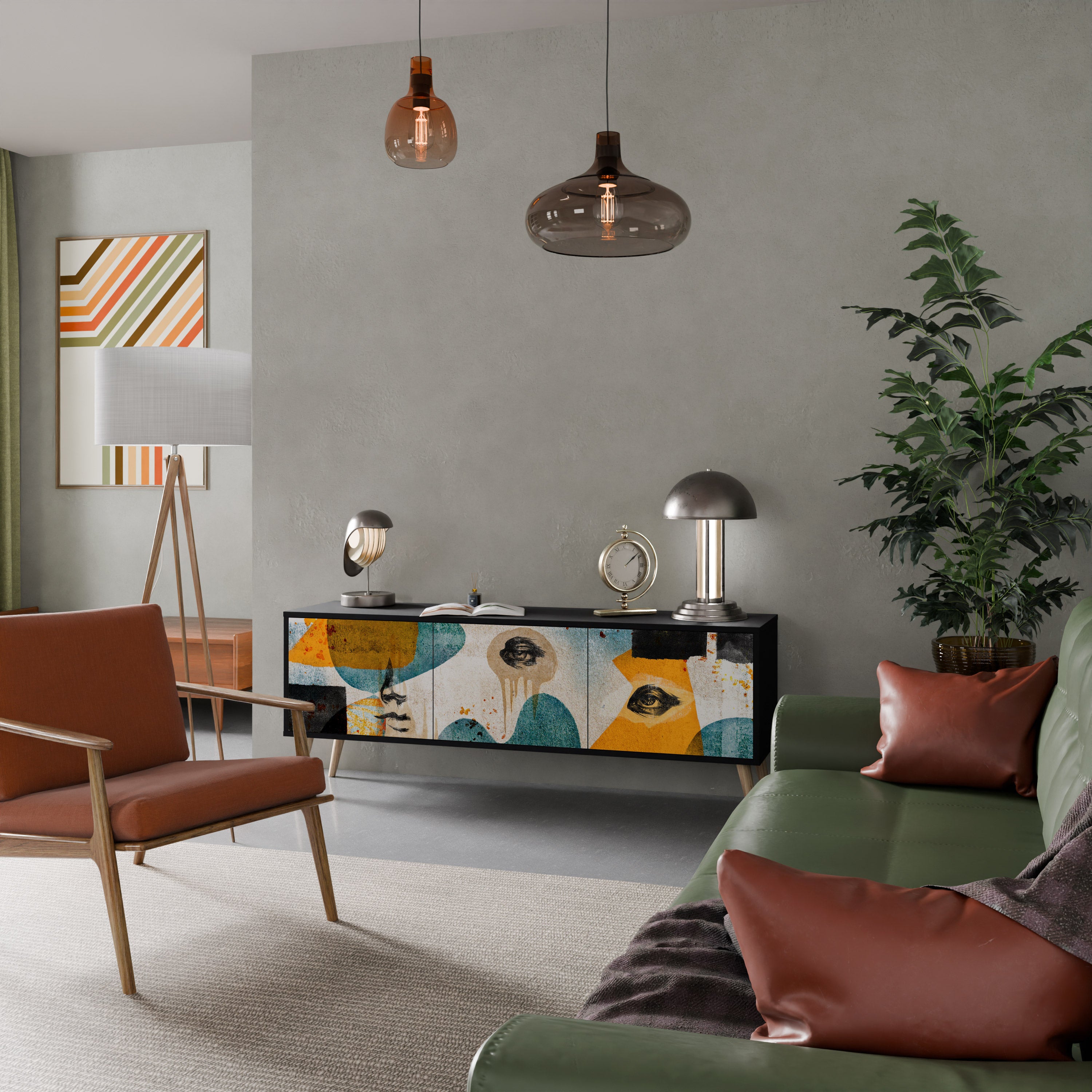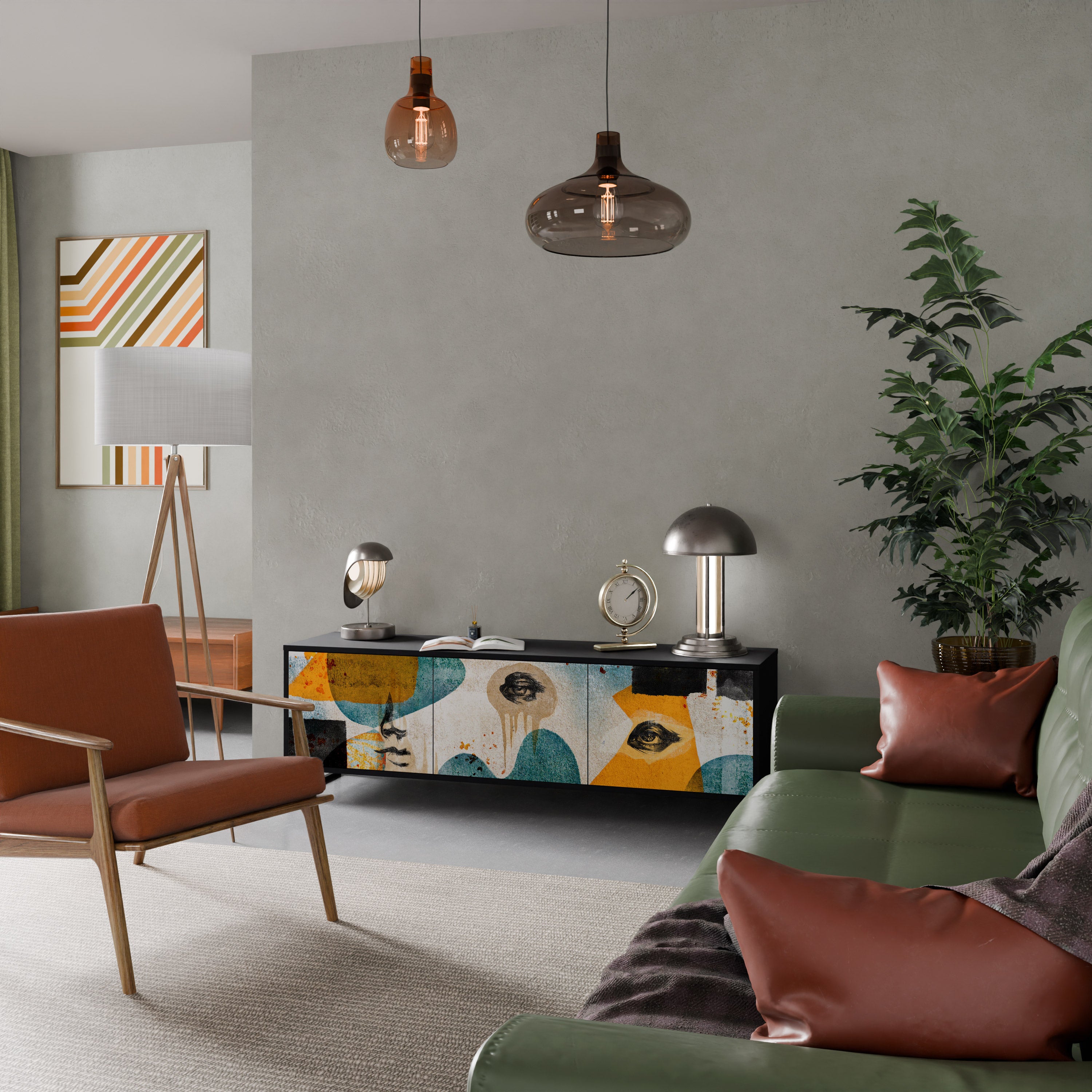 El cuerpo negro del soporte crea un toque moderno y audaz que combina a la perfección con ambientes industriales y minimalistas. Los frentes con estampado de diseño aportan carácter y singularidad, convirtiendo esta pieza no solo en práctica, sino también en un elemento decorativo destacado.