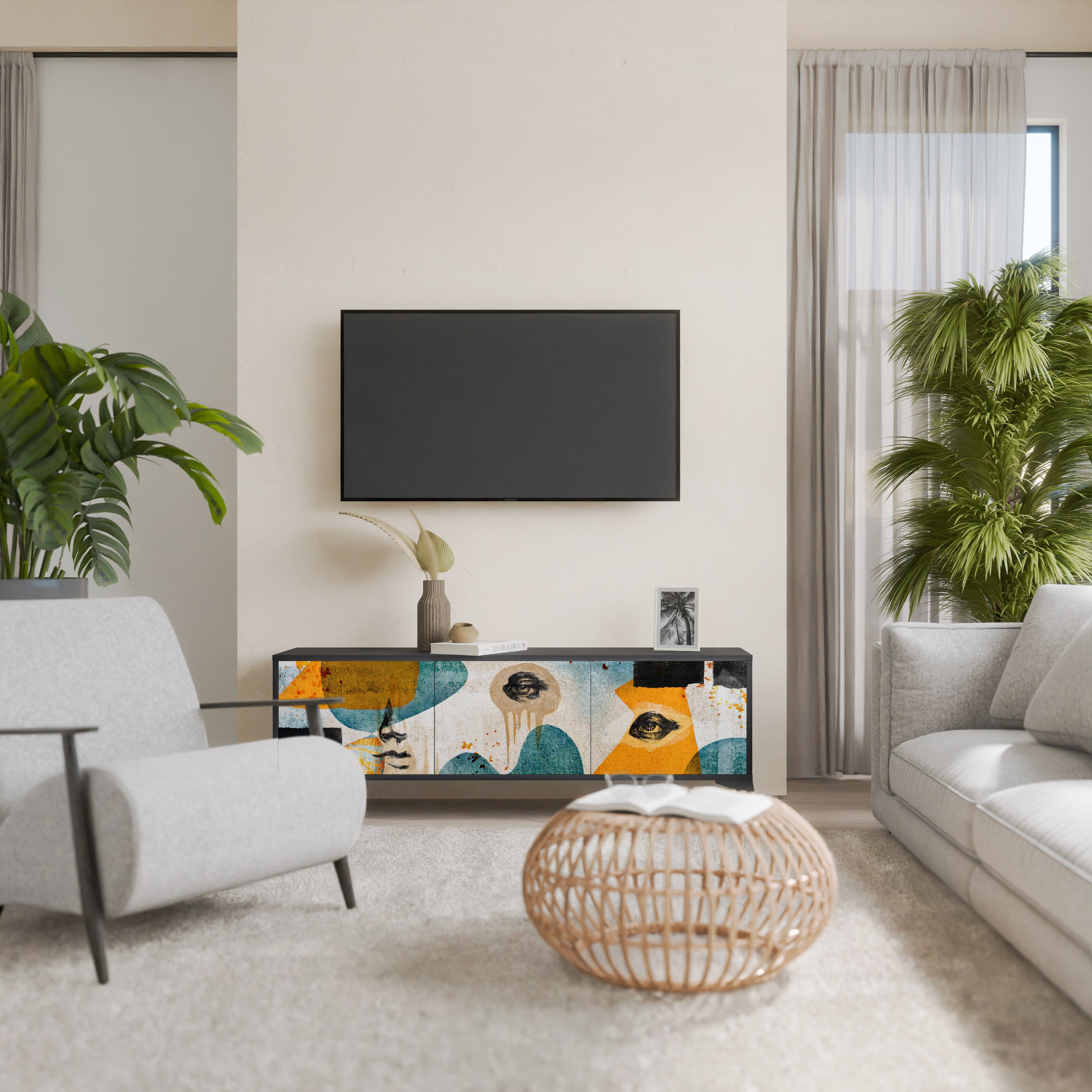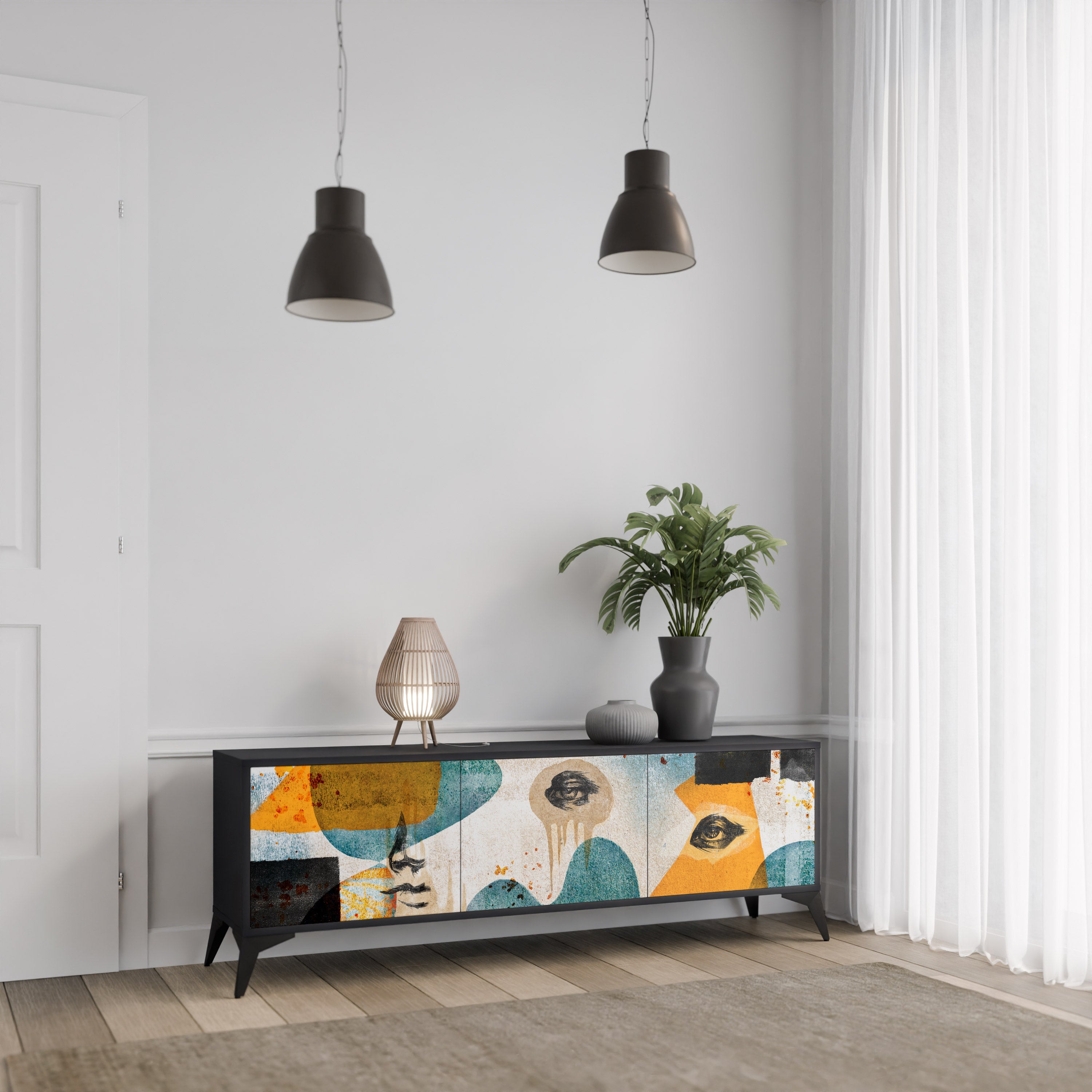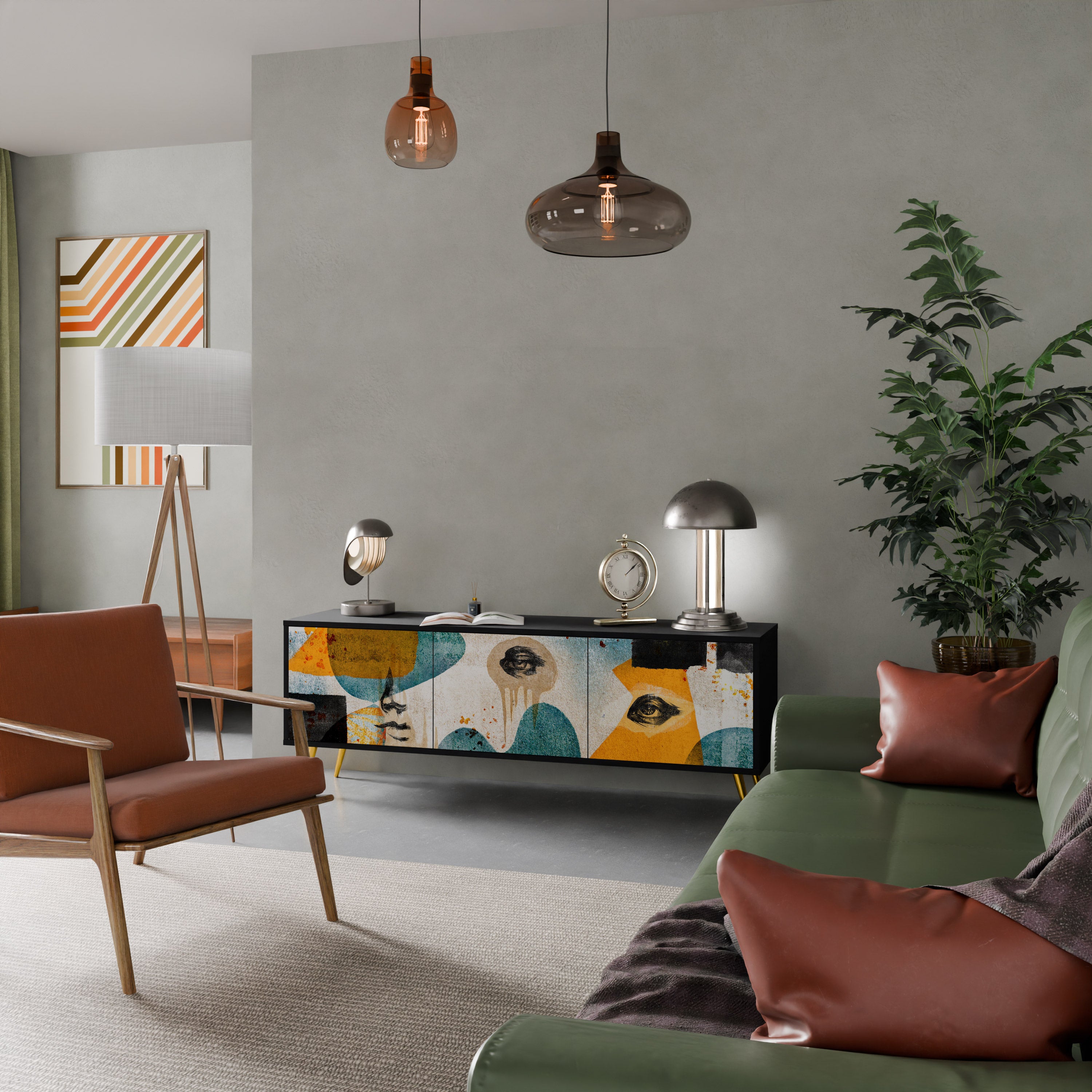 El cuerpo negro del soporte crea un toque moderno y audaz que combina a la perfección con ambientes industriales y minimalistas. Los frentes con estampado de diseño aportan carácter y singularidad, convirtiendo esta pieza no solo en práctica, sino también en un elemento decorativo destacado.