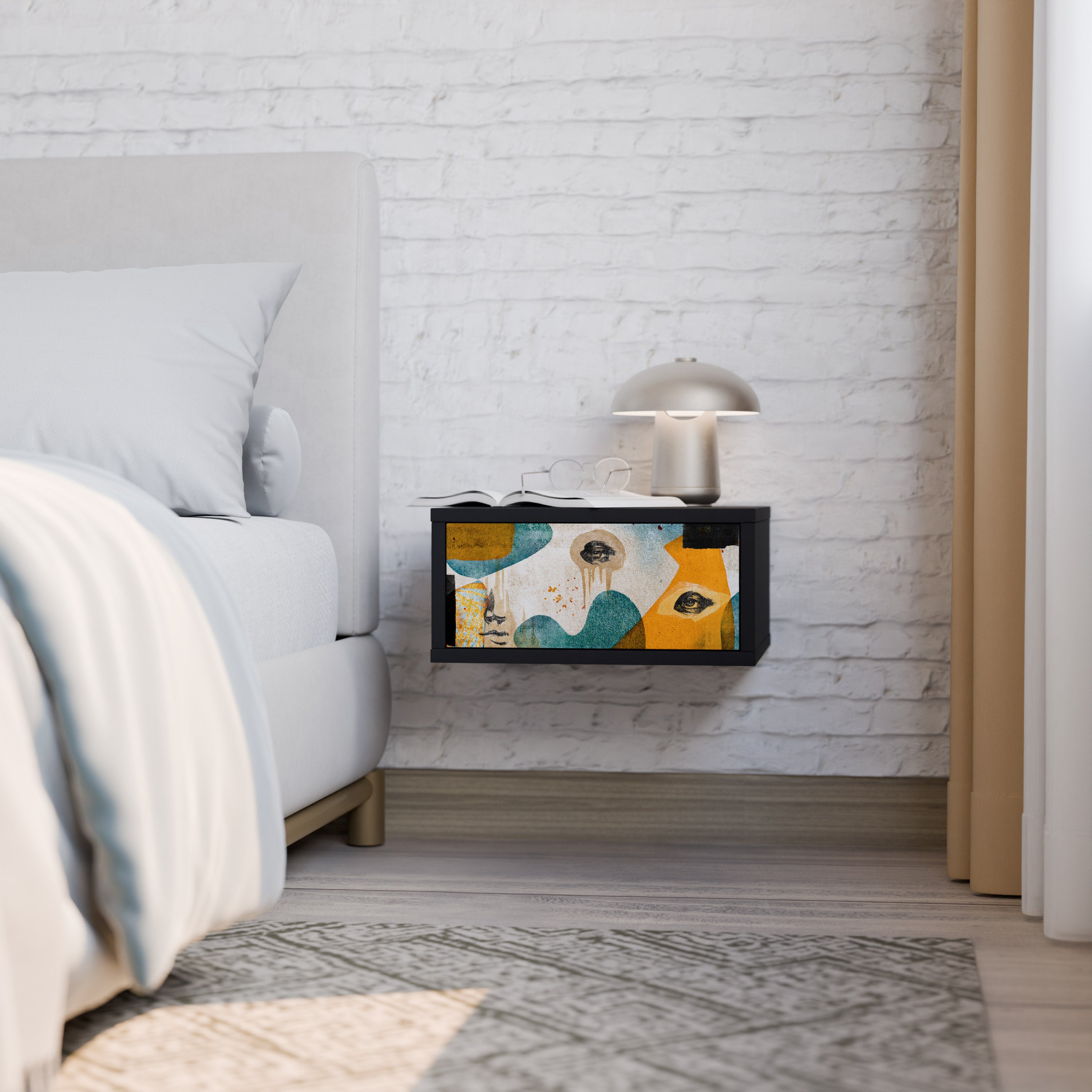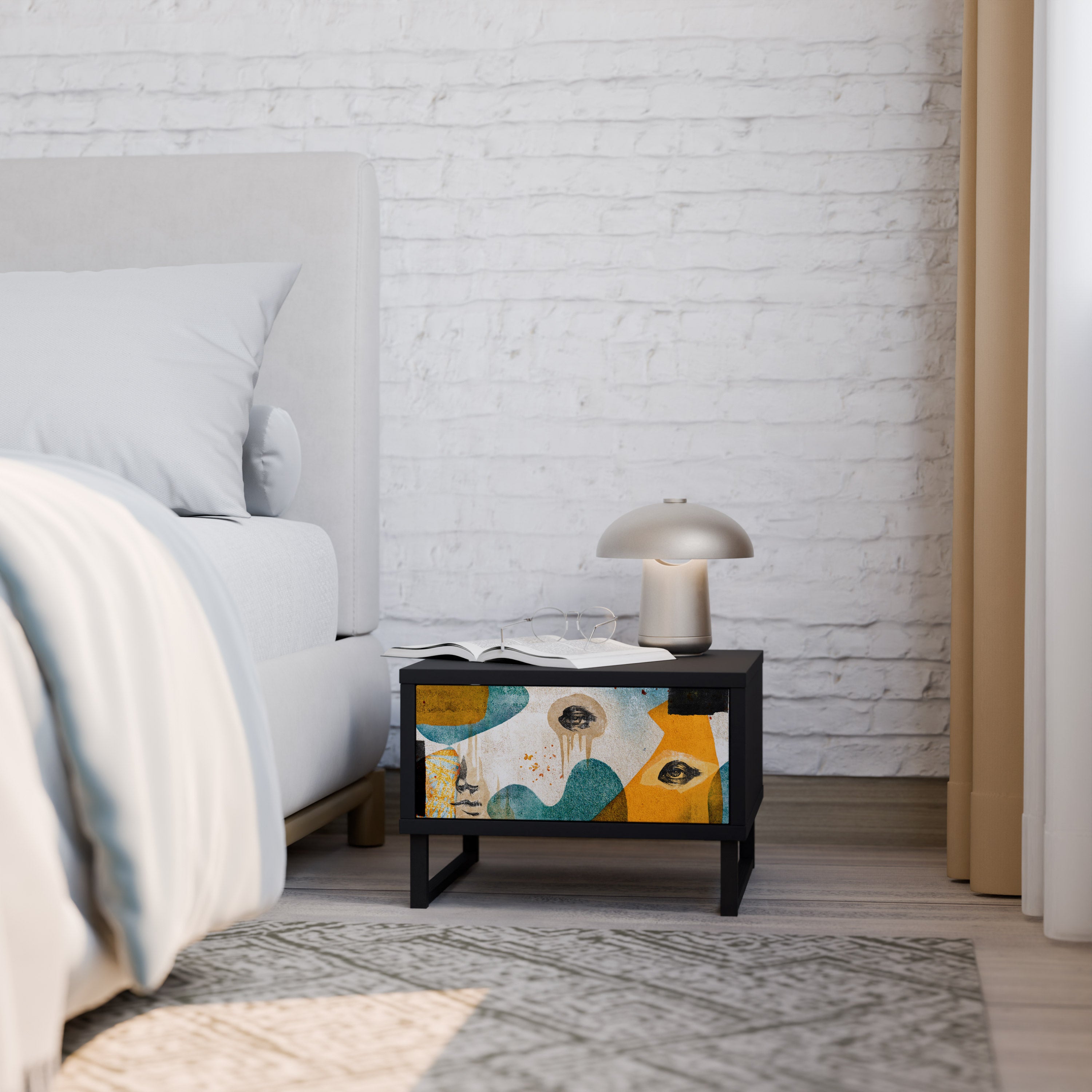 Mesita de noche ABSTRACT FACES en acabado negro