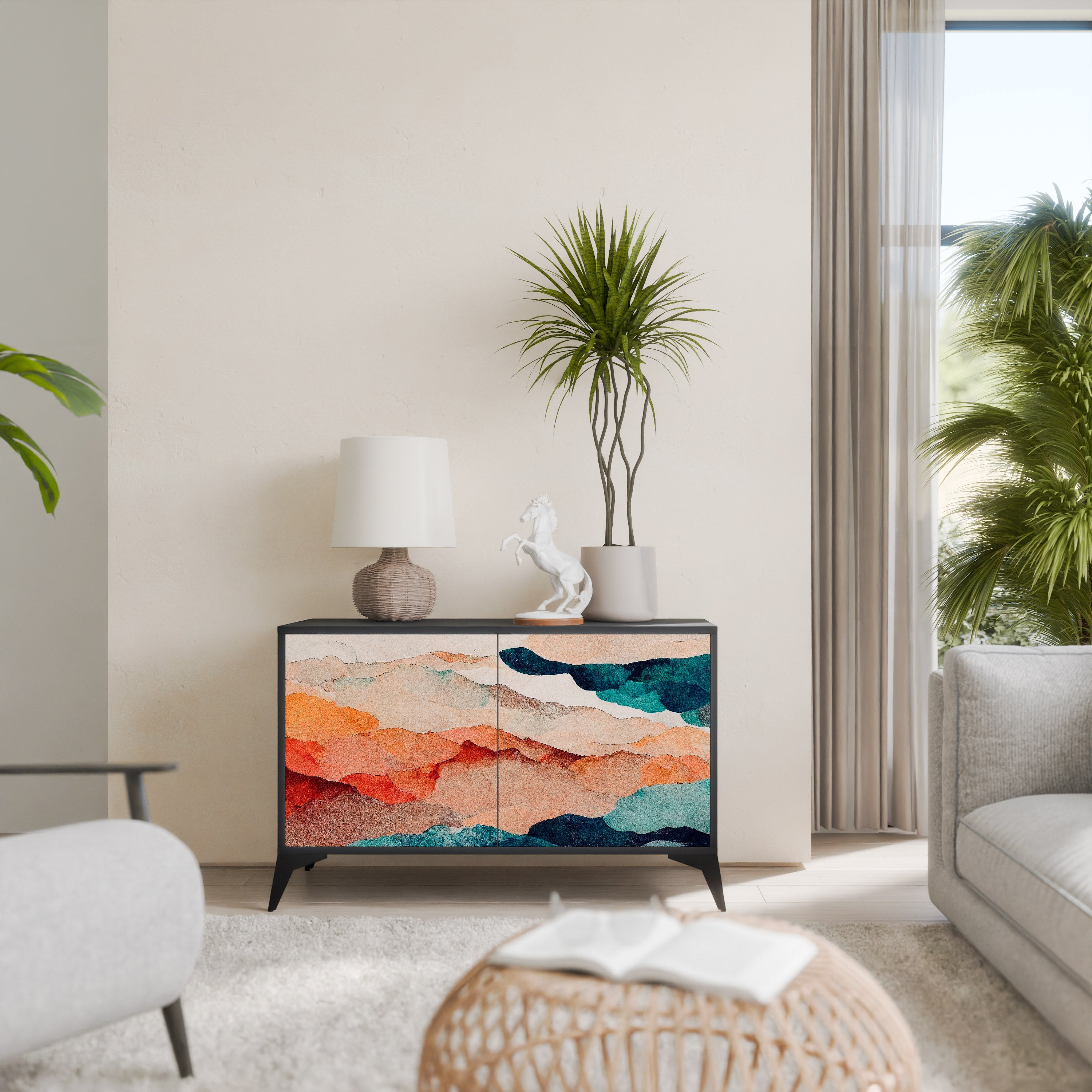 Aparador de 2 puertas PAISAJE ABSTRACTO en acabado negro