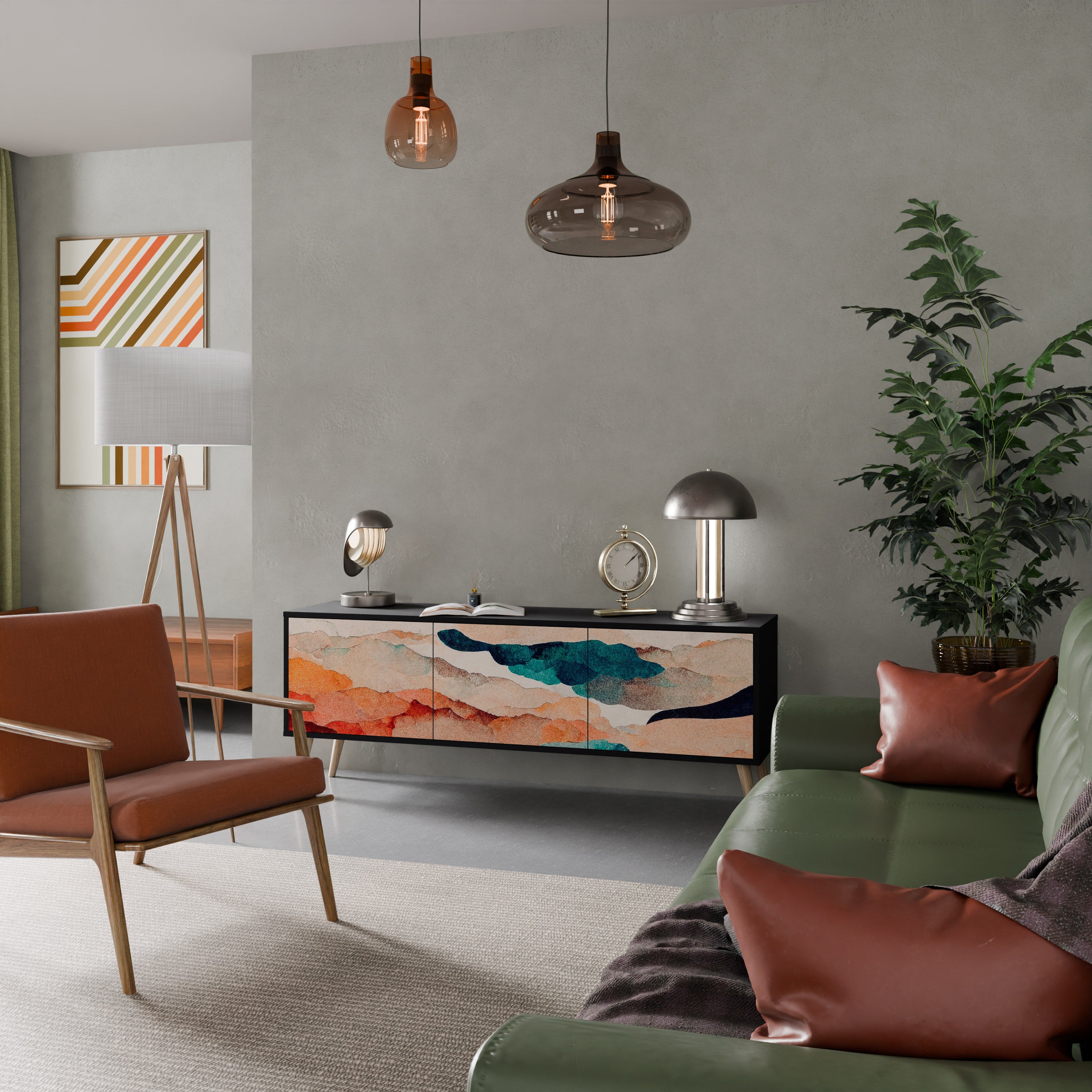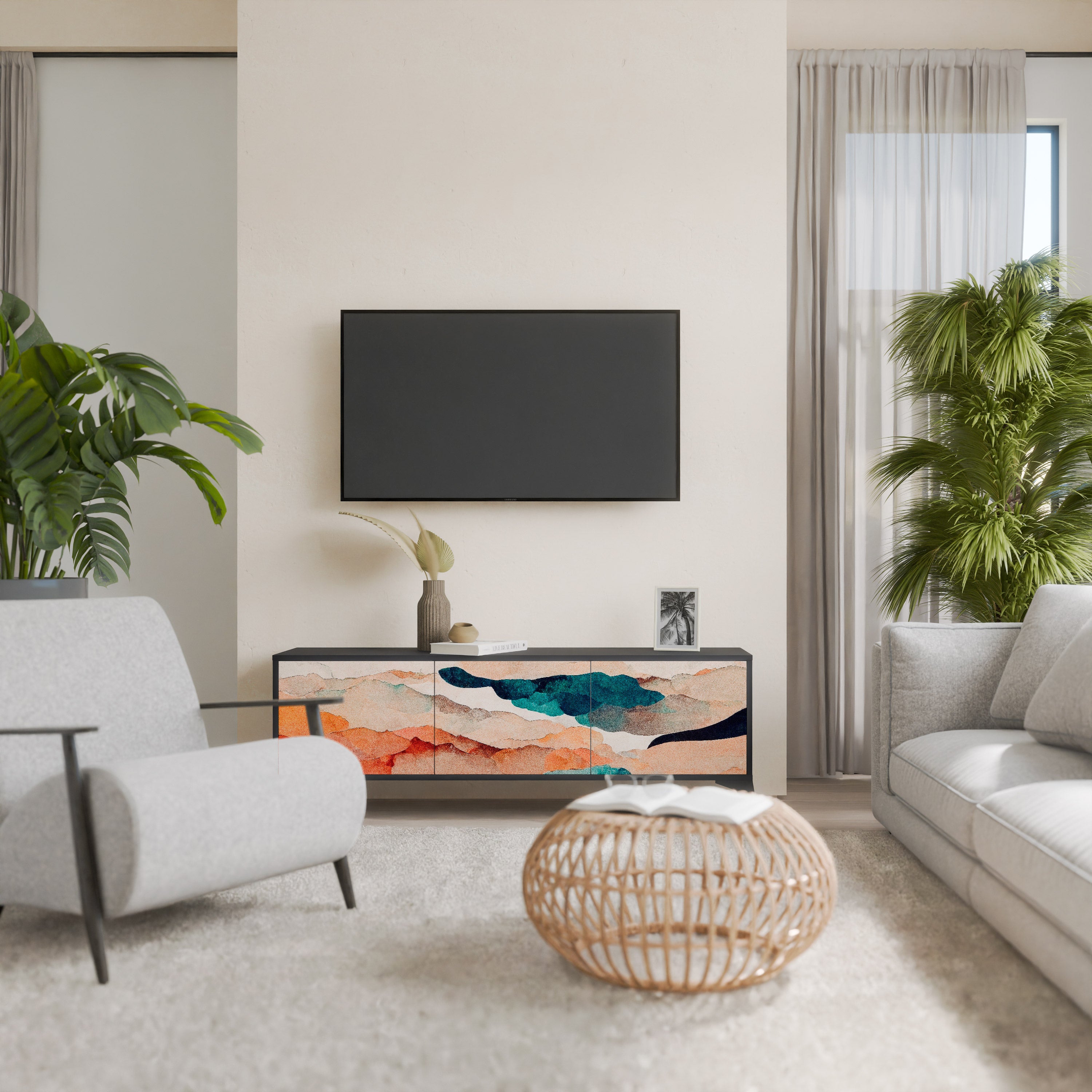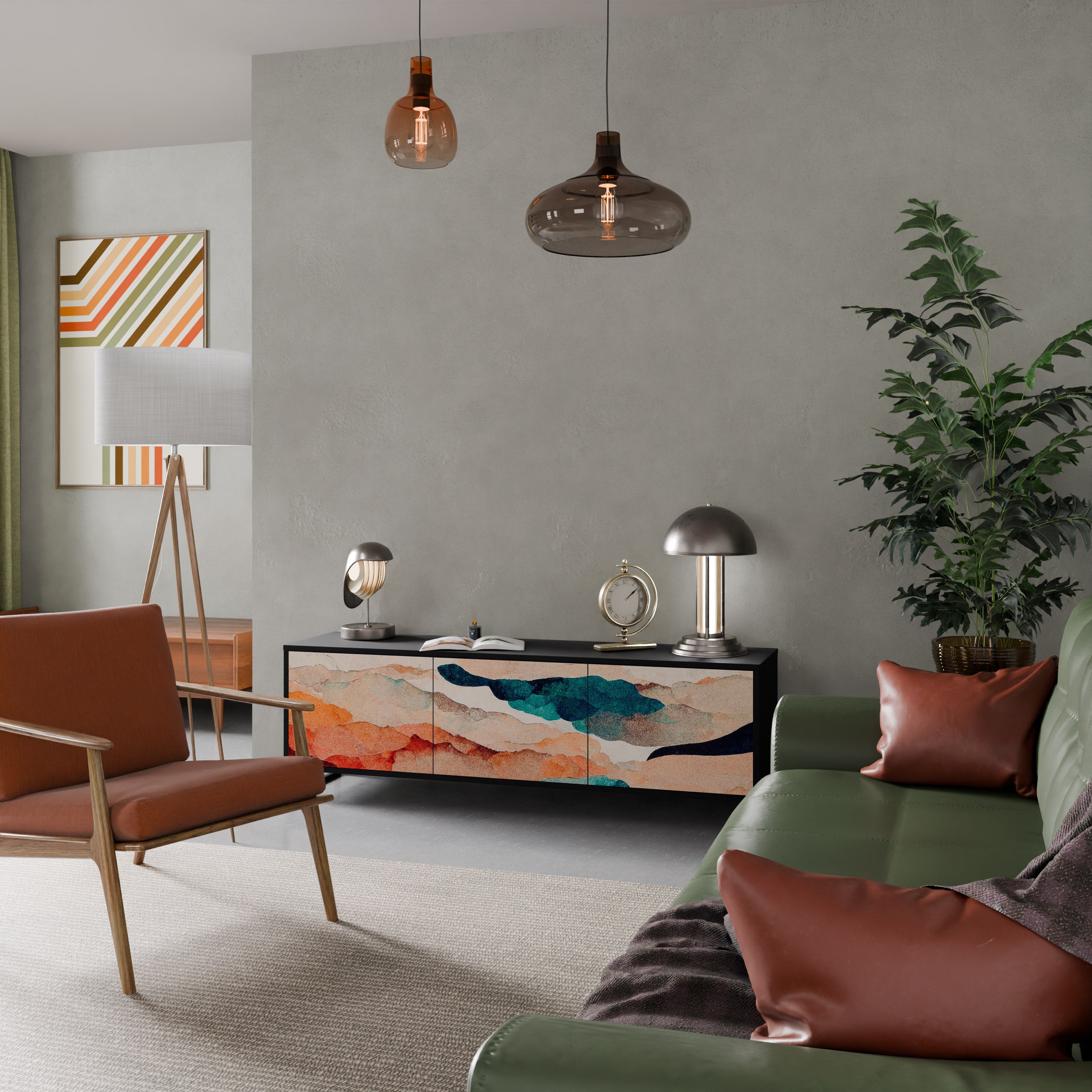 Mueble de TV de 3 puertas PAISAJE ABSTRACTO en acabado negro