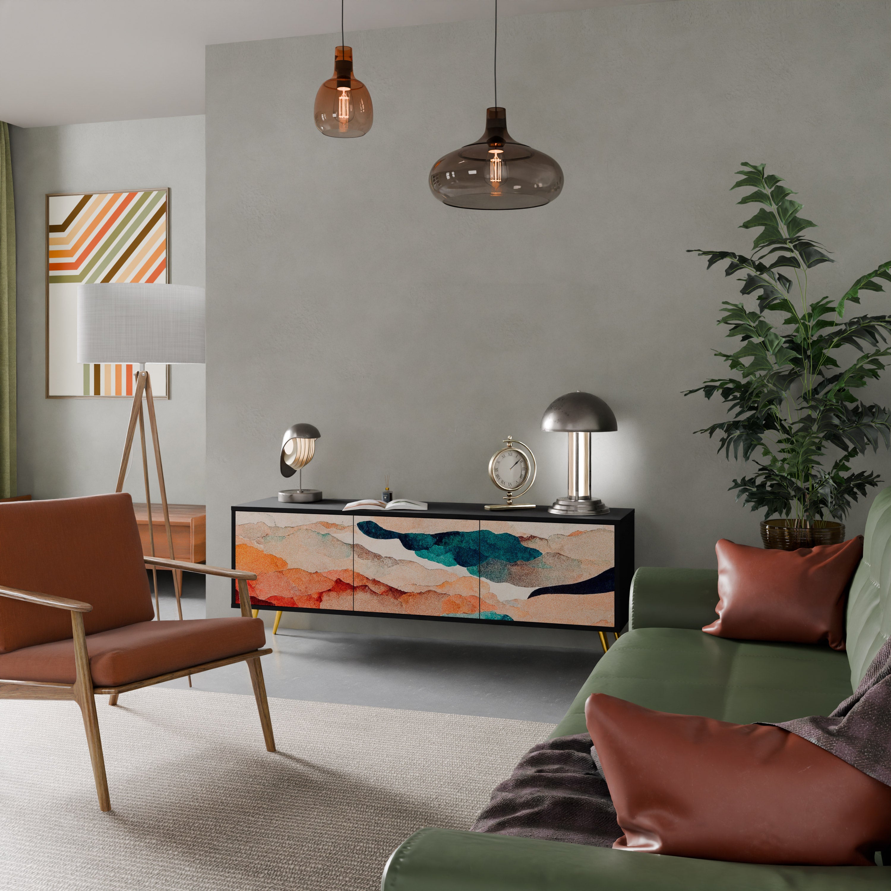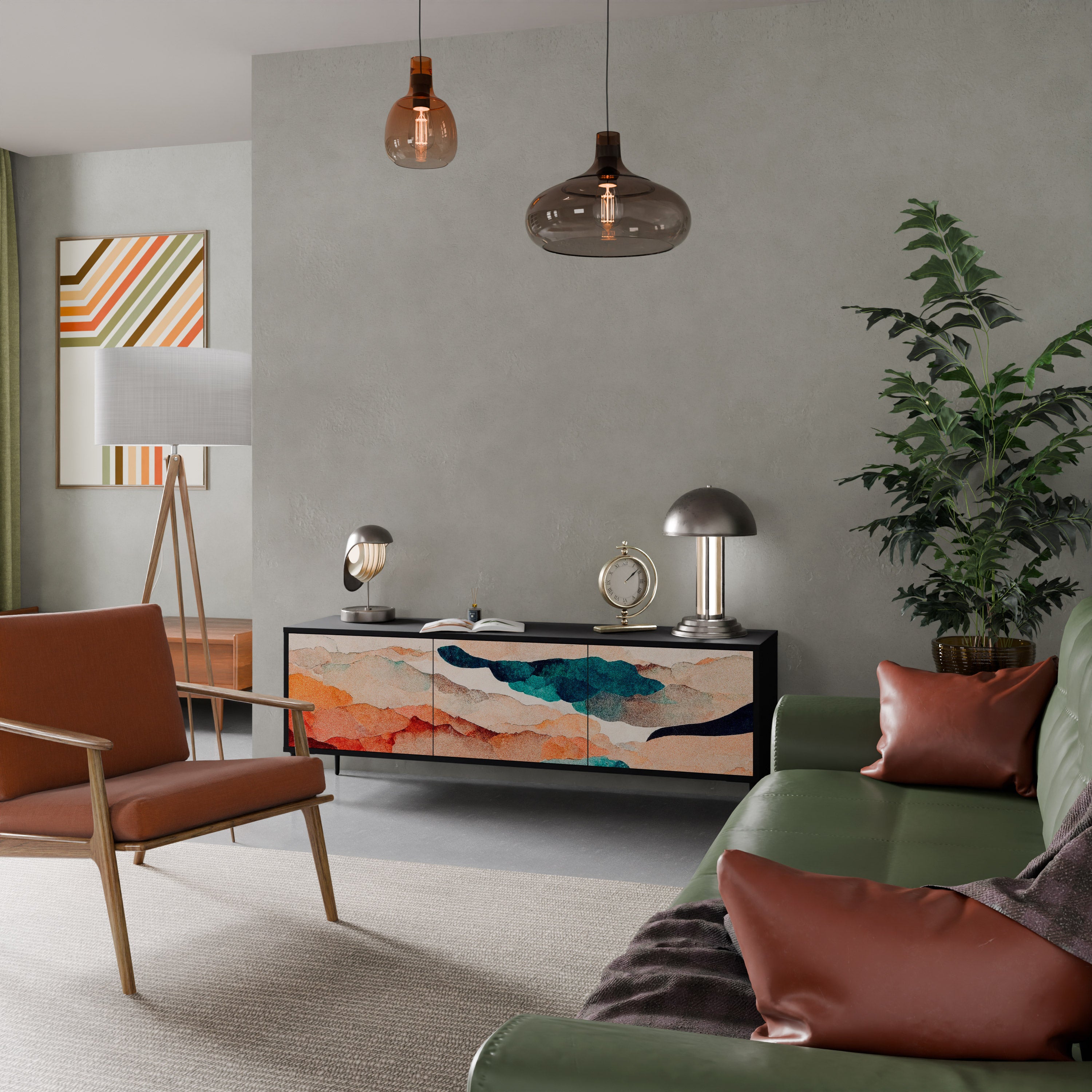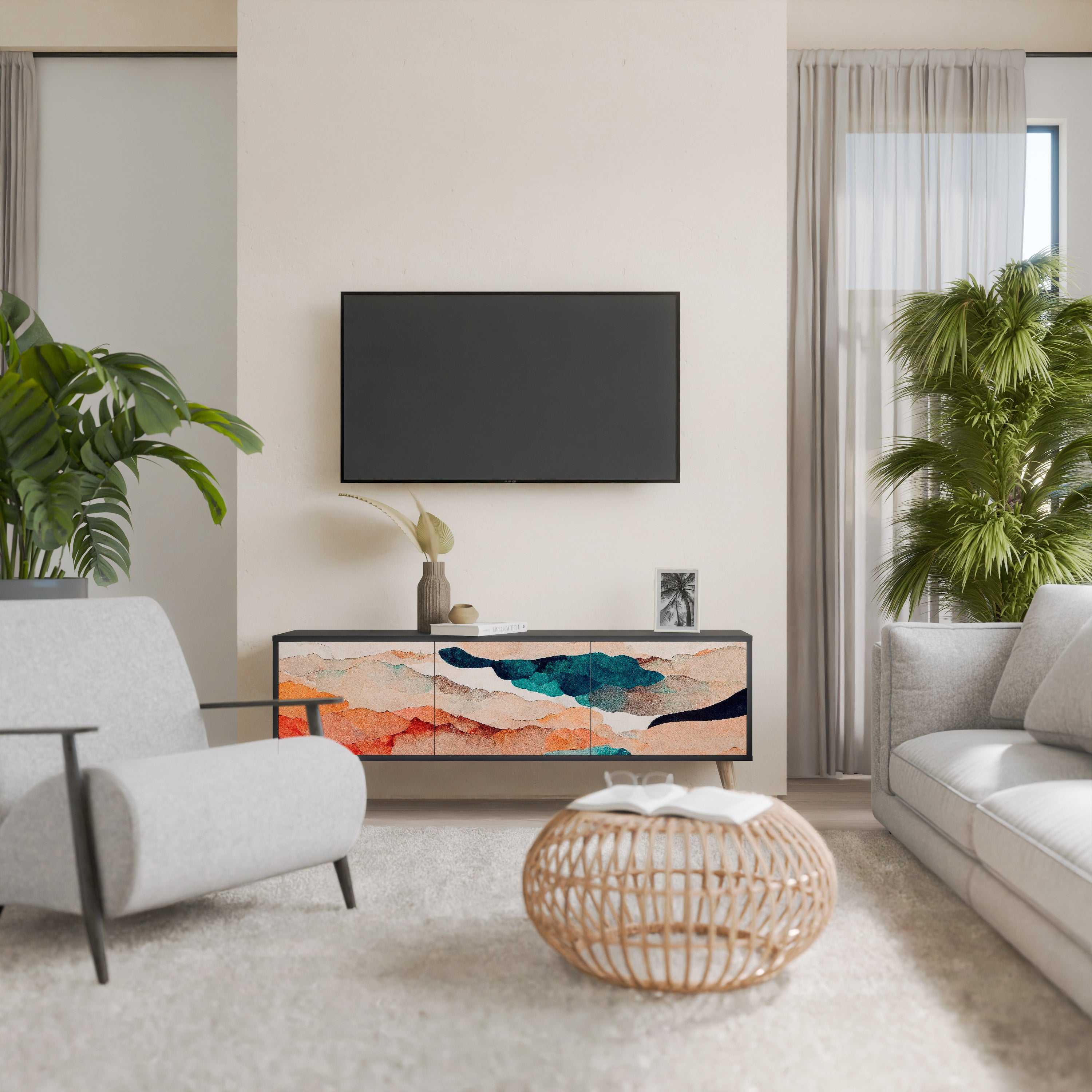 Mueble de TV de 3 puertas PAISAJE ABSTRACTO en acabado negro