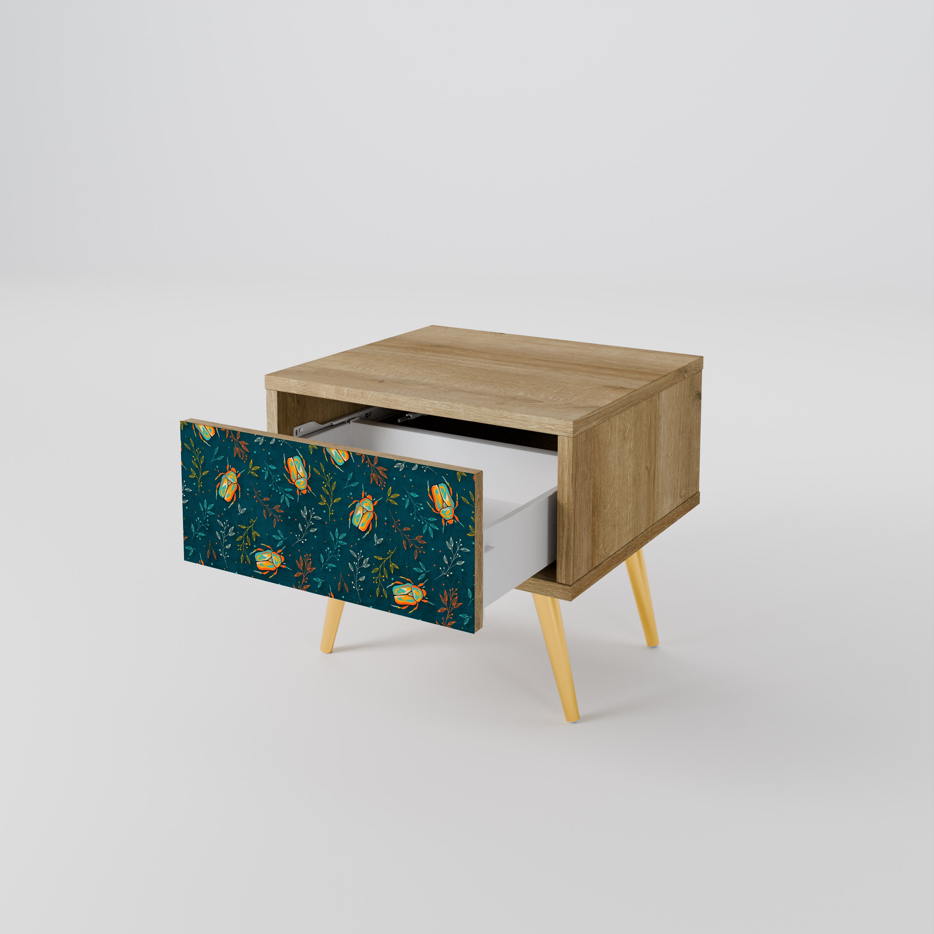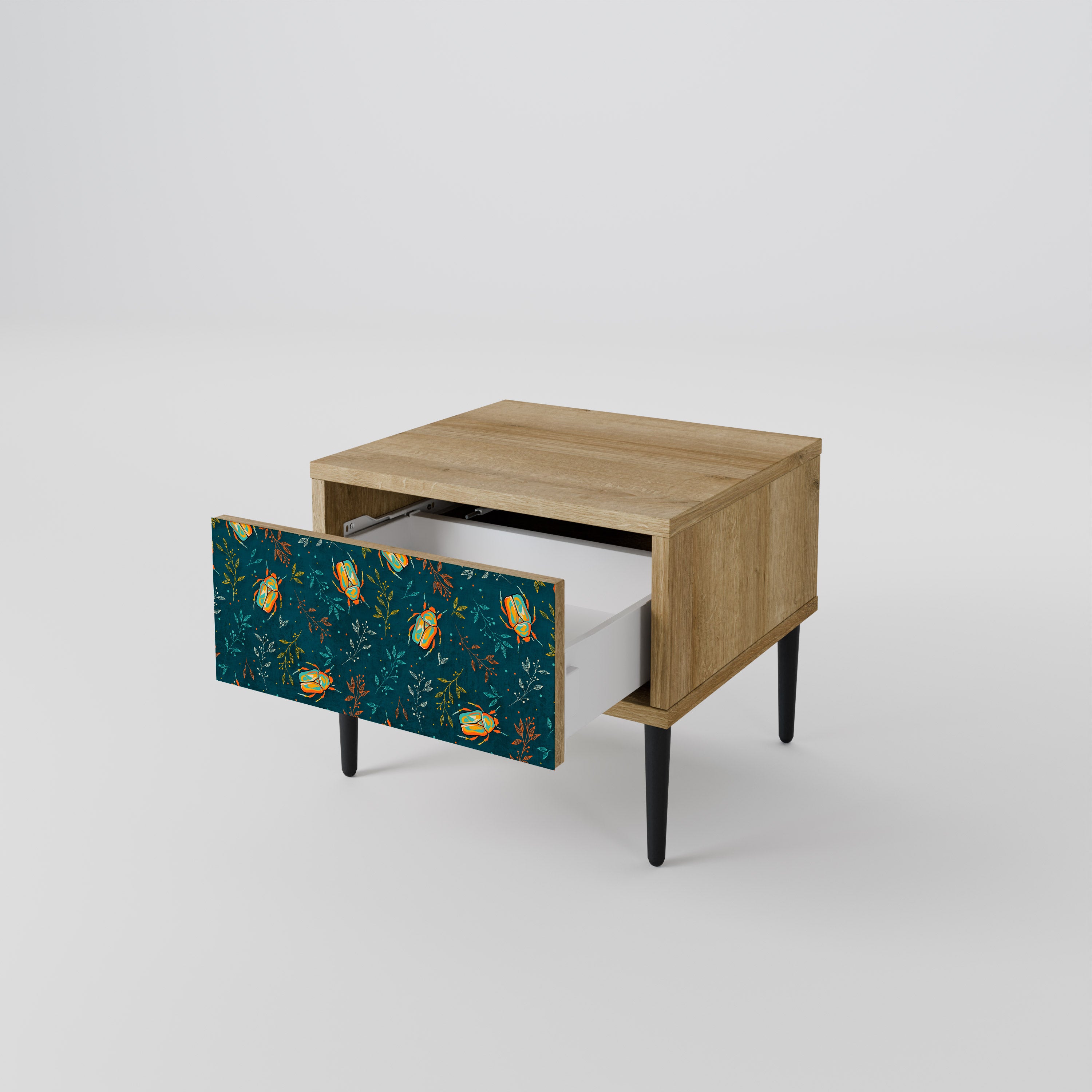 Descubra la funcionalidad y la elegancia en un formato compacto con nuestra mesita de noche con cajón. Este práctico y elegante mueble combina a la perfección la belleza natural de la madera con el diseño moderno del frente del cajón, creando un elemento armonioso para cualquier dormitorio.