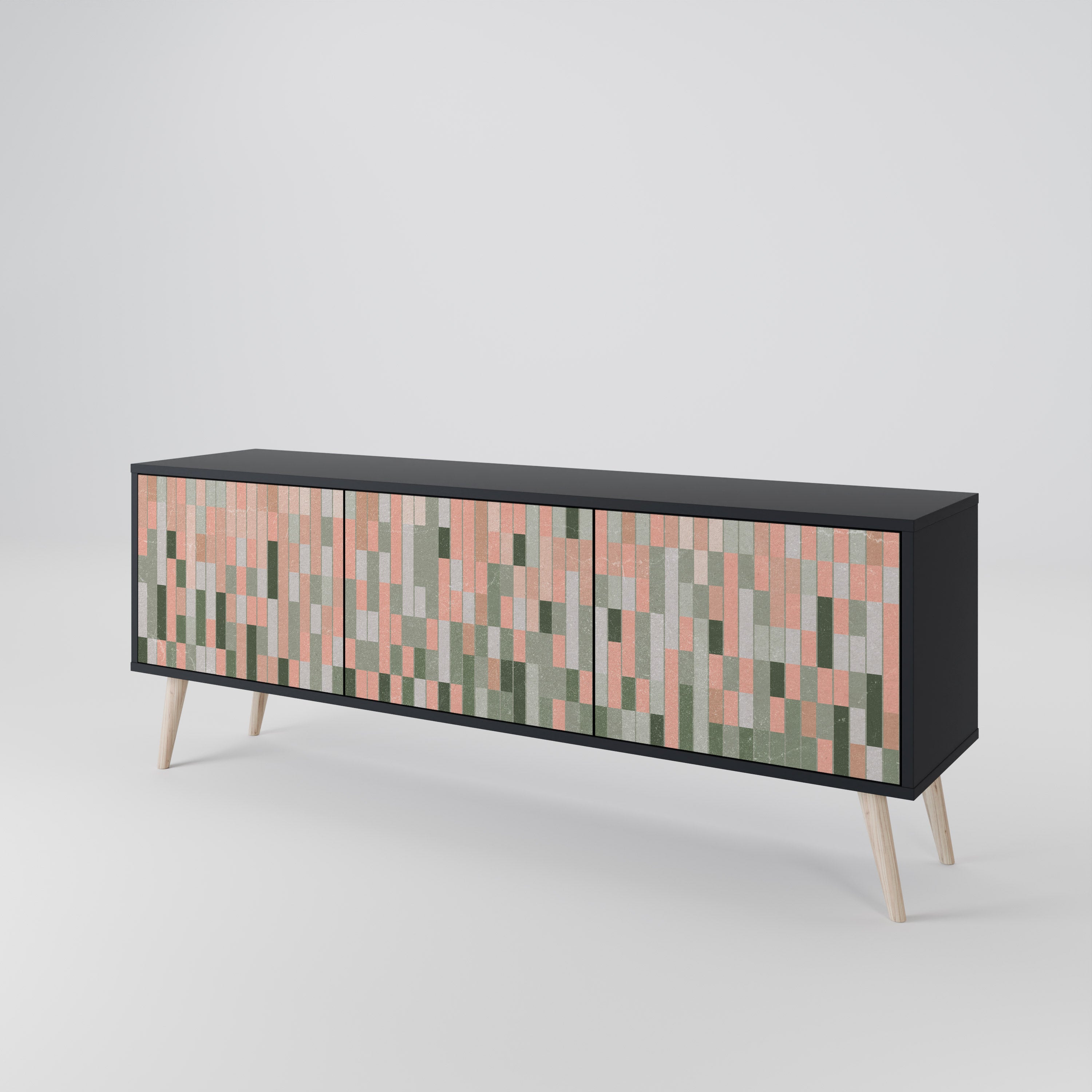 El cuerpo negro del soporte crea un toque moderno y audaz que combina a la perfección con ambientes industriales y minimalistas. Los frentes con estampado de diseño aportan carácter y singularidad, convirtiendo esta pieza no solo en práctica, sino también en un elemento decorativo destacado.