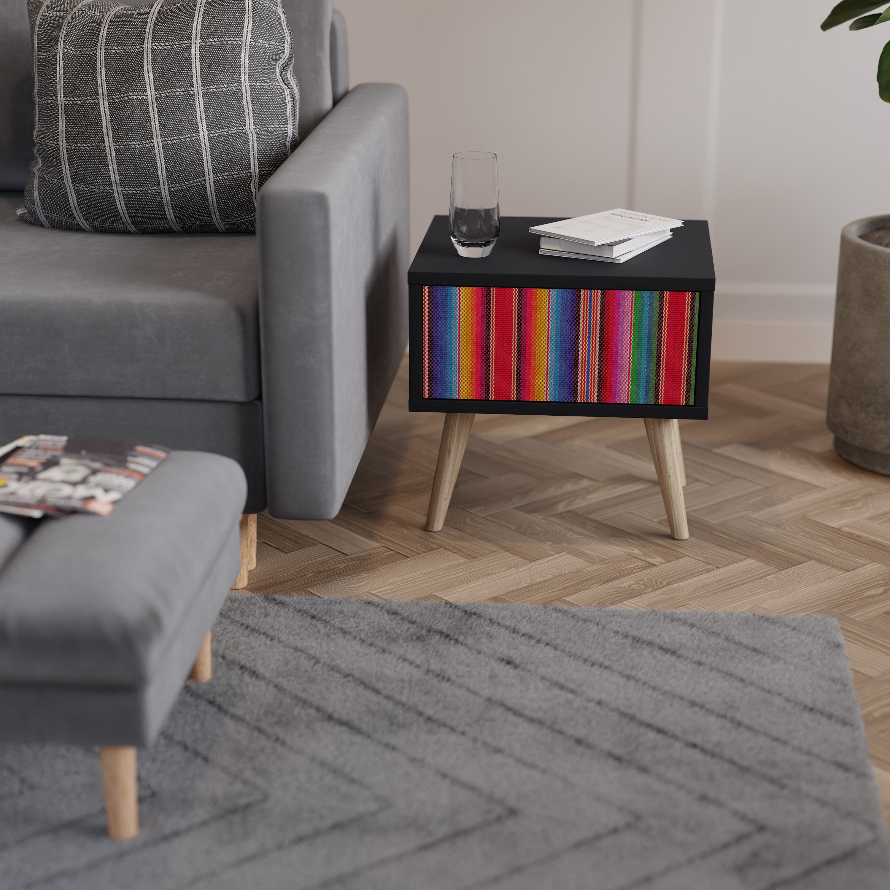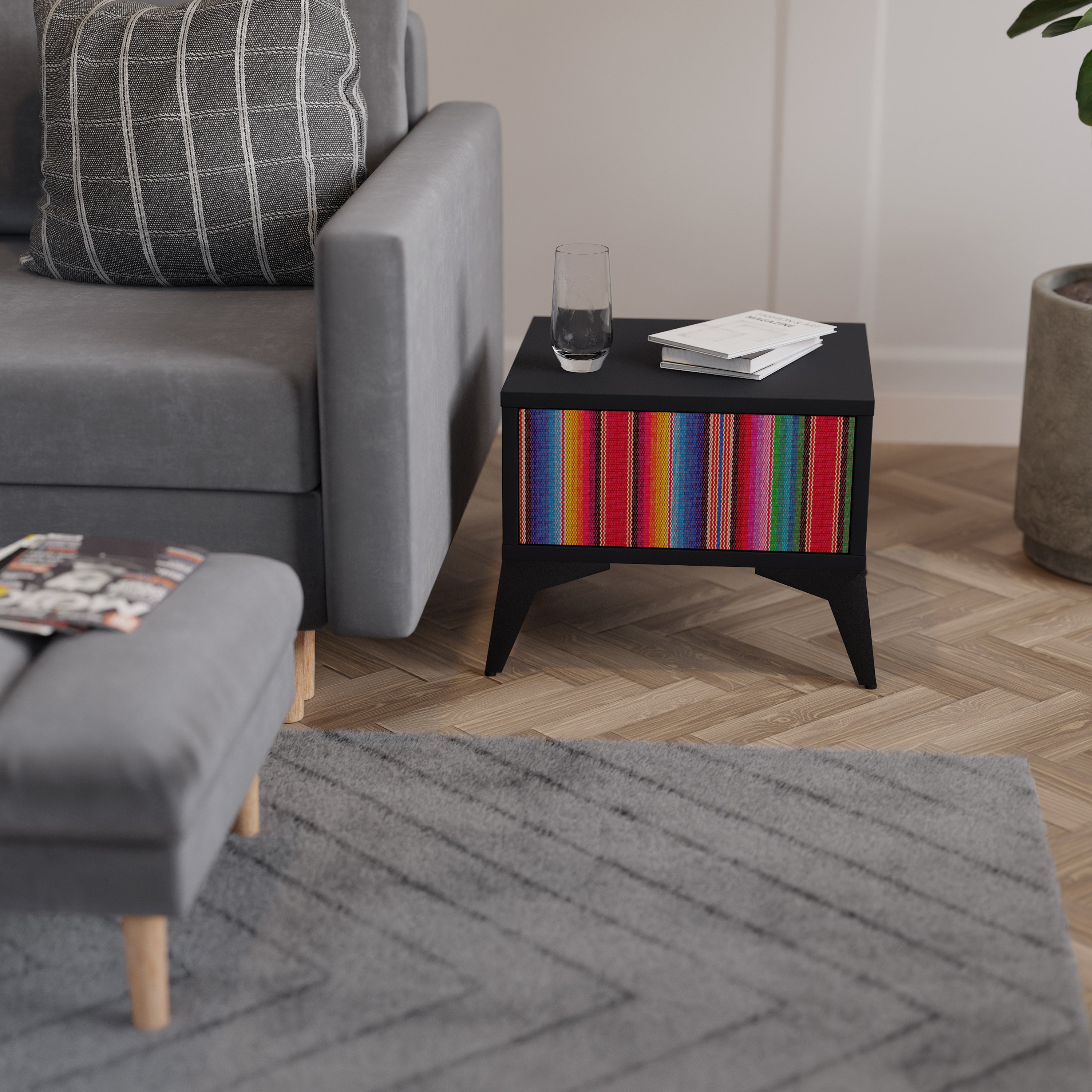 Mesita de noche ÉTNICA MEXICANA en acabado negro