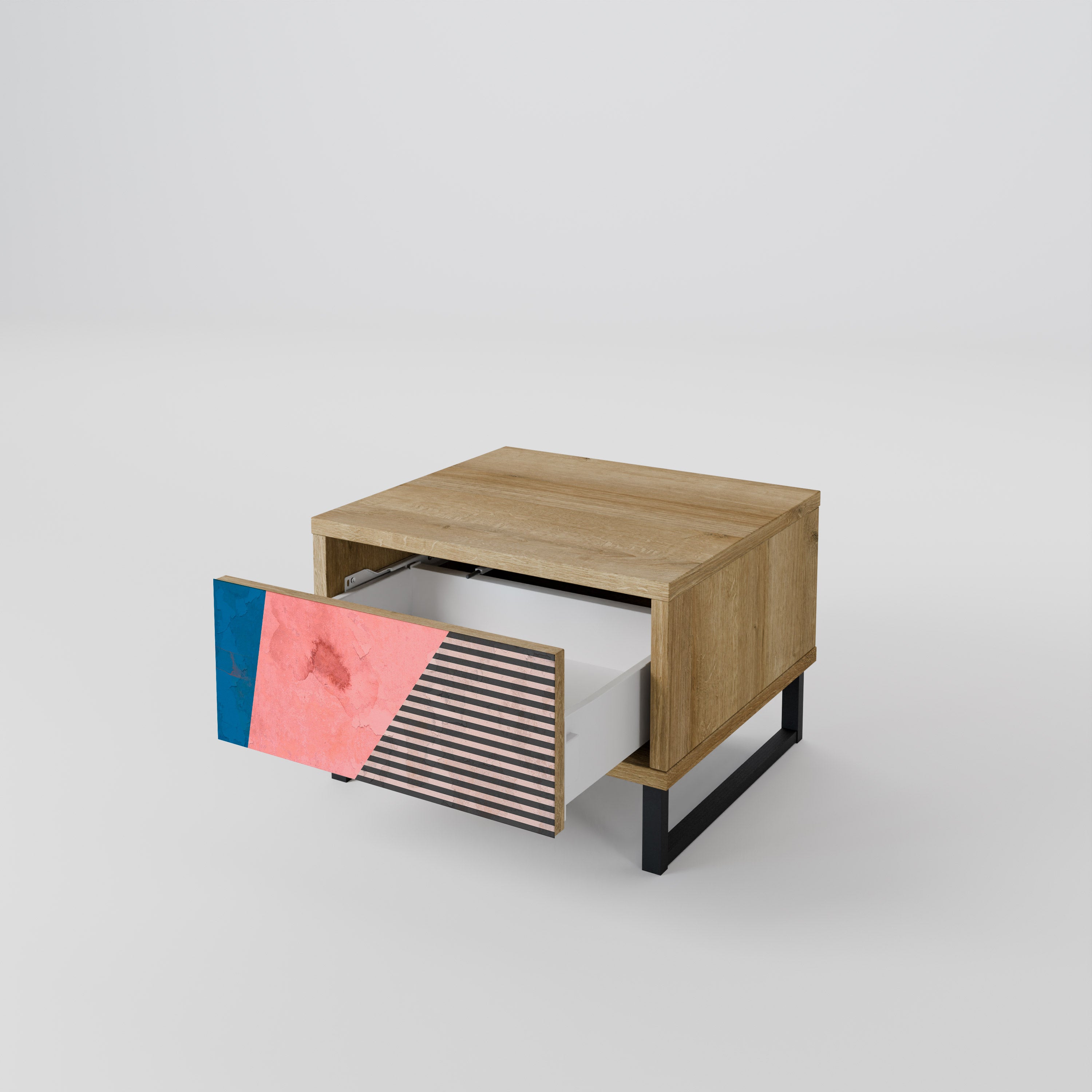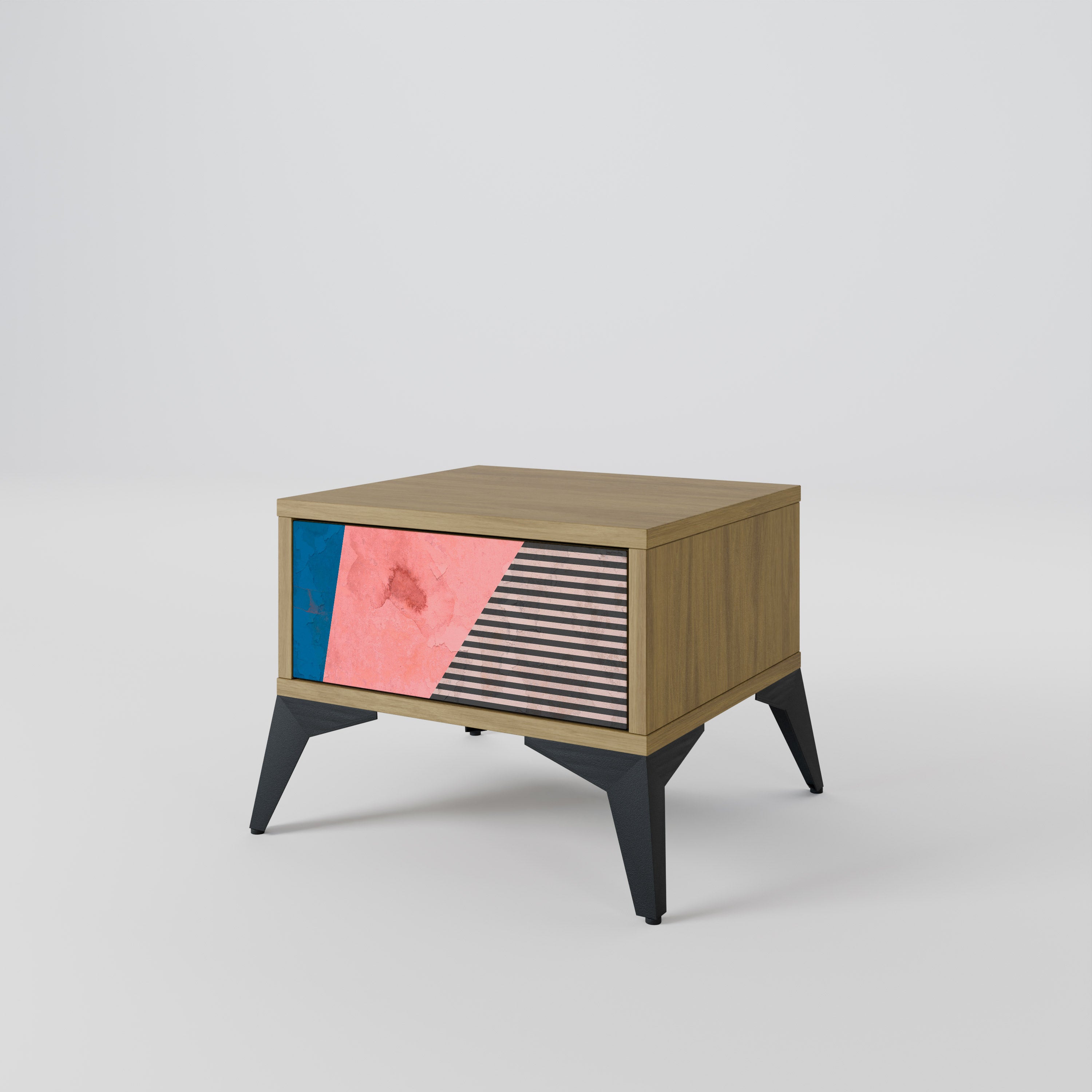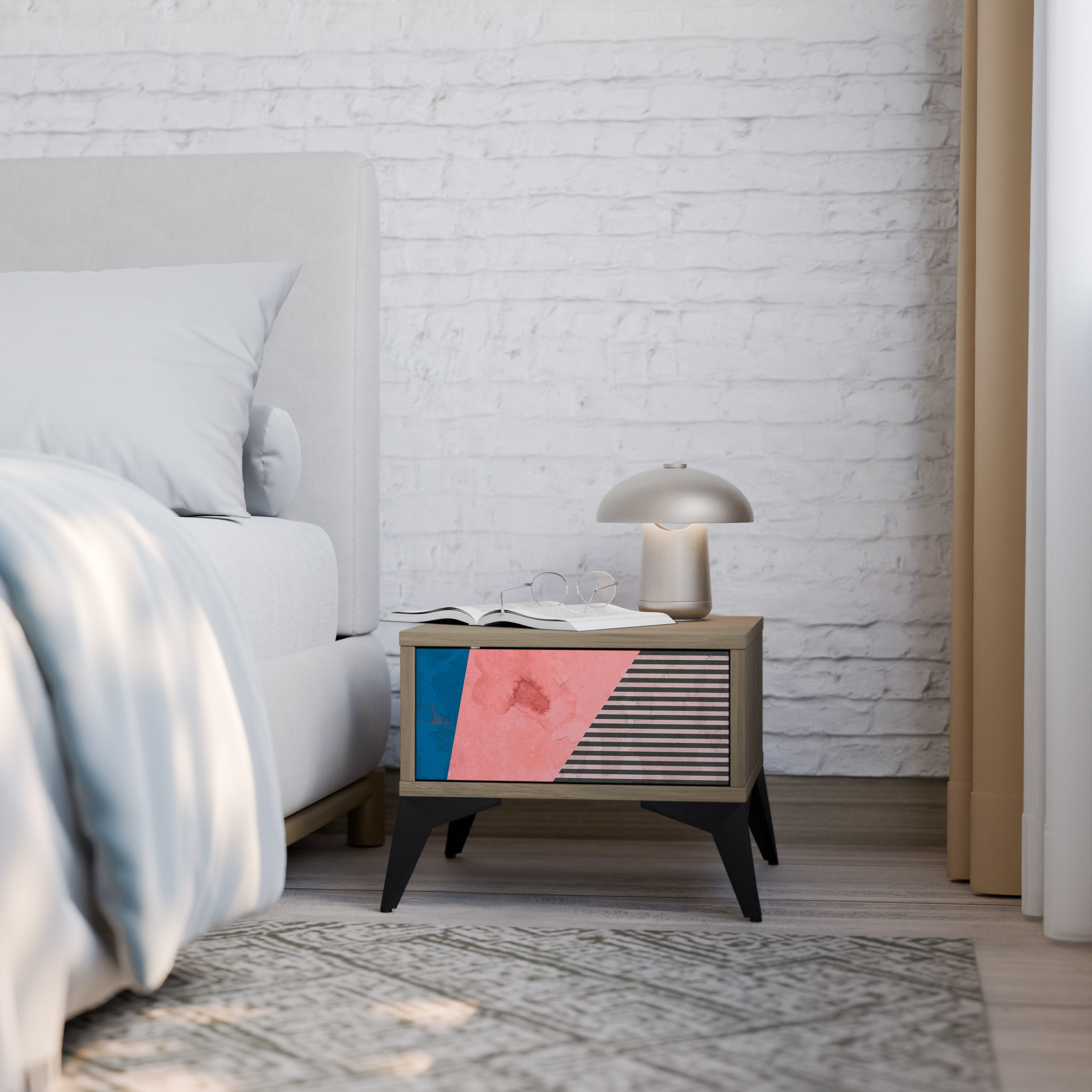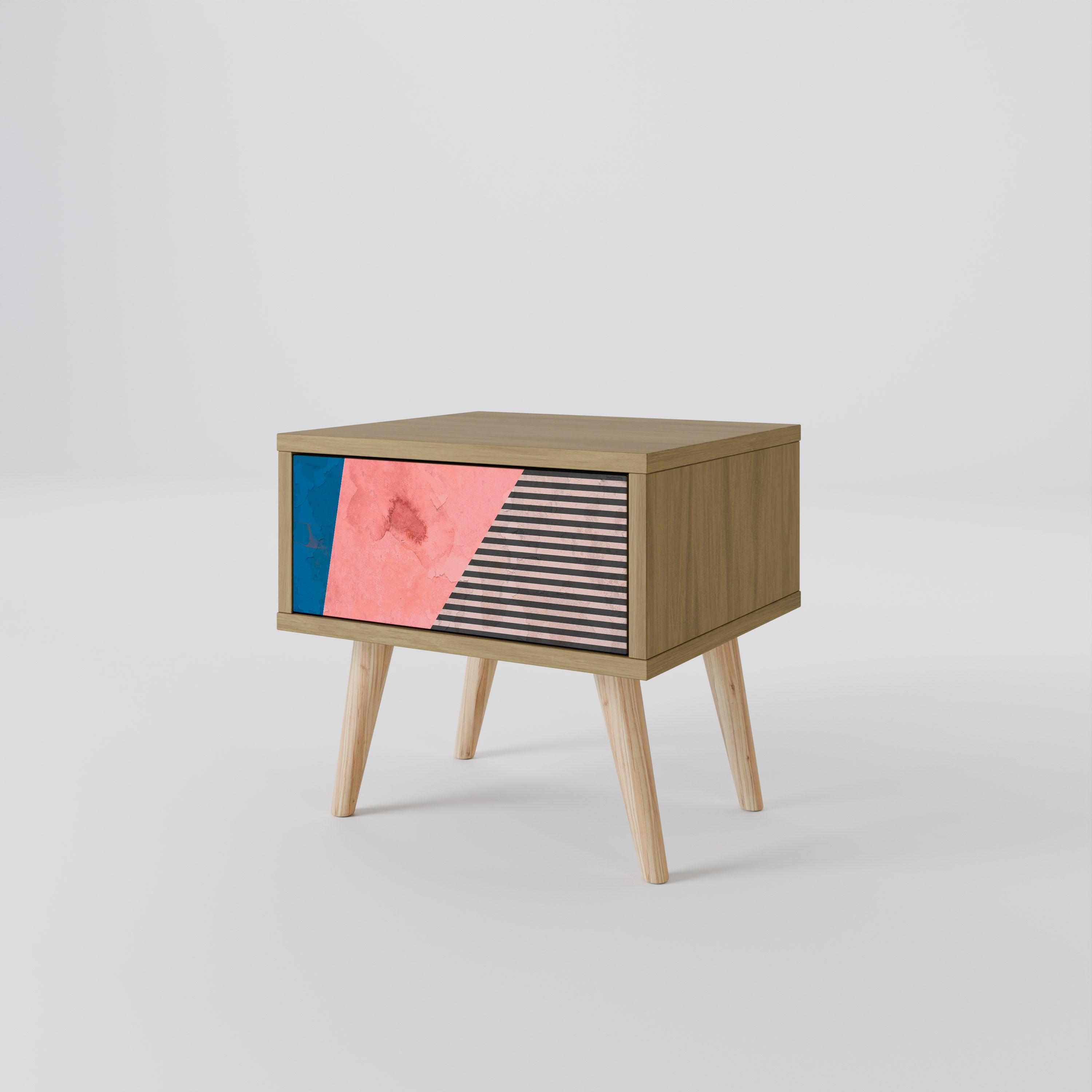 Mesita de noche GLAMOROUS STRIPE en efecto roble