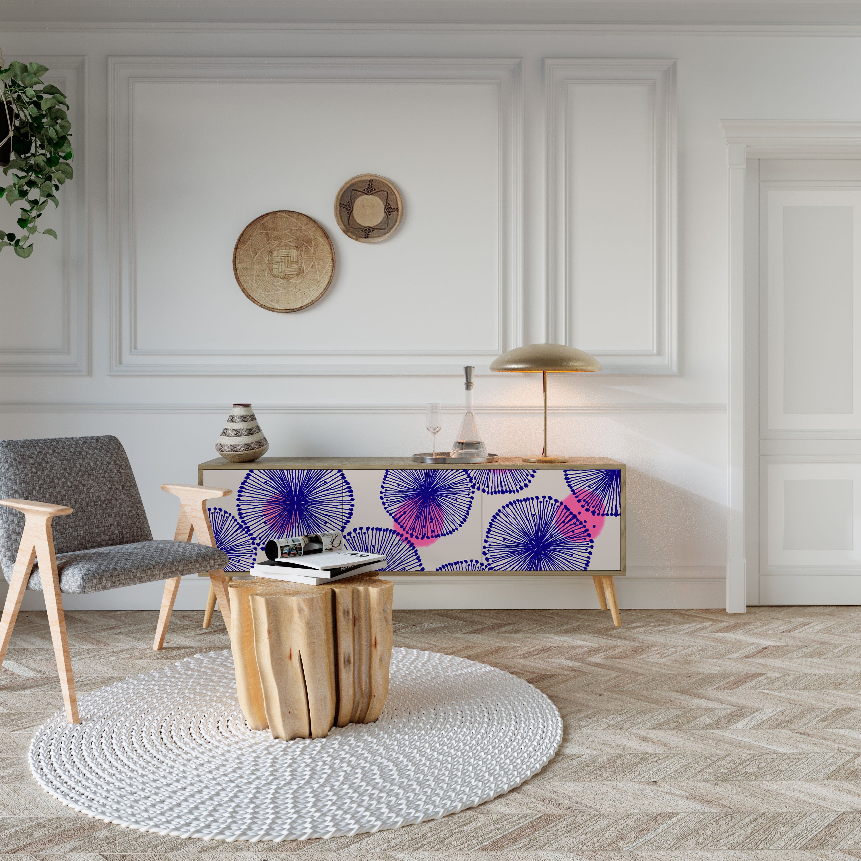 Descubra la solución perfecta para el almacenamiento y la organización con nuestro mueble de TV de 3 puertas. Fabricado con materiales duraderos, combinando patas de madera con un cuerpo laminado, este mueble es elegante y funcional. Las puertas de madera con un atractivo estampado aportan un toque de elegancia, convirtiéndolo en una excelente opción para cualquier interior.