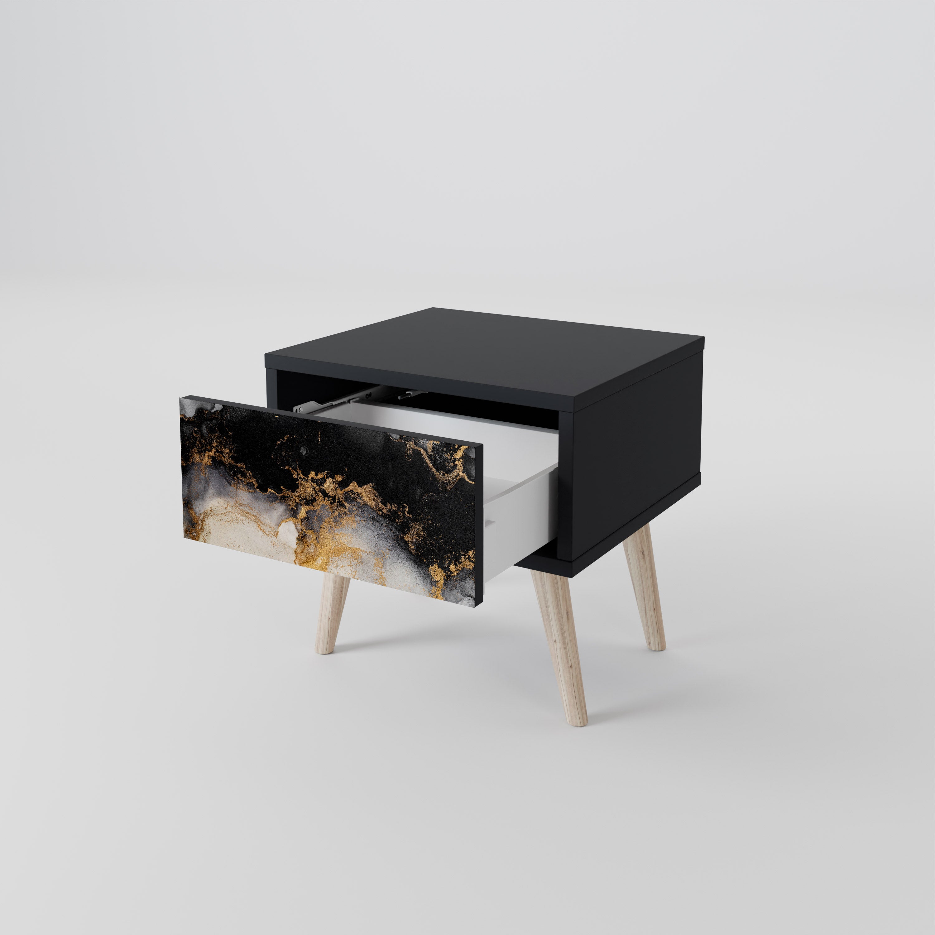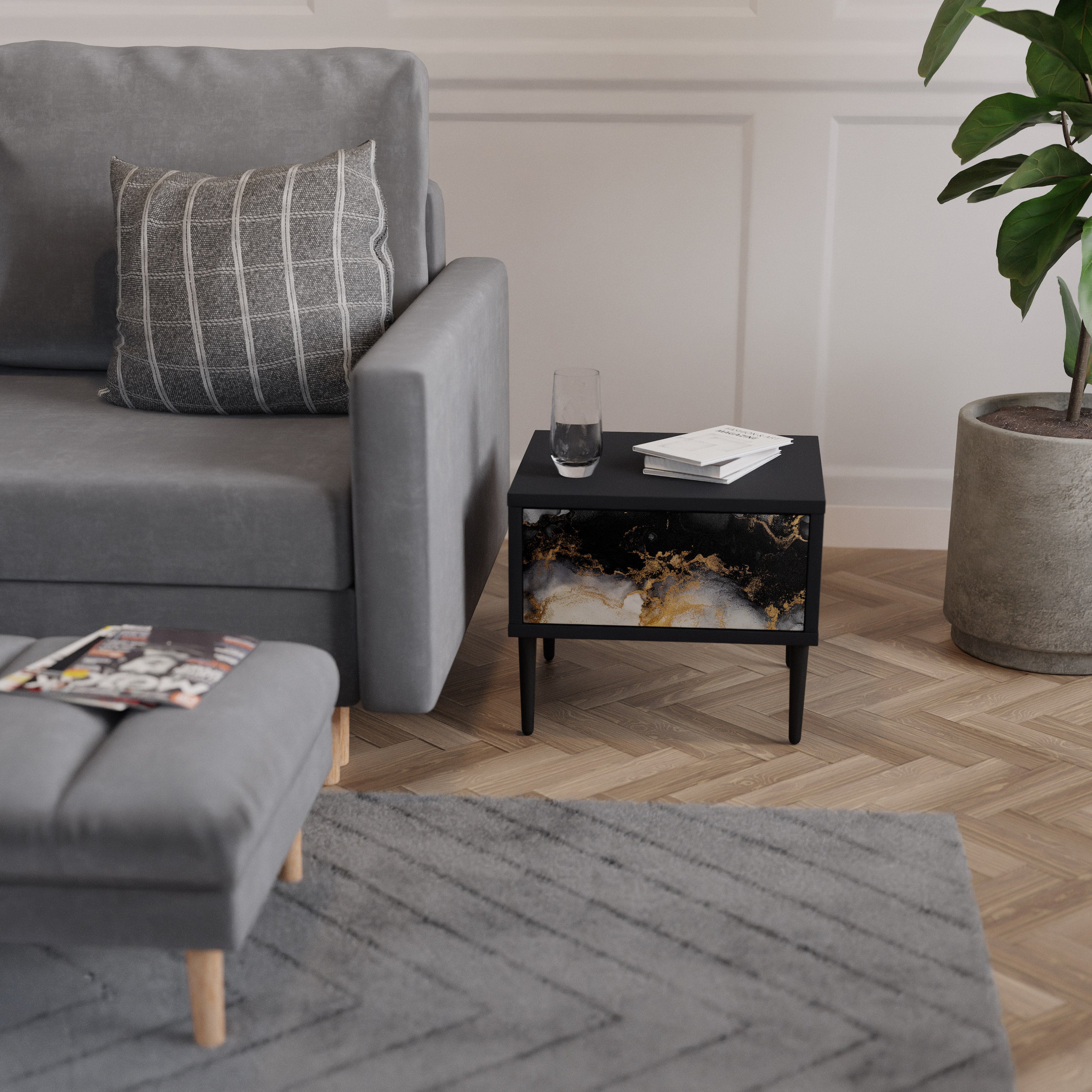 Mesita de noche MARBLE OF TOMORROW en acabado negro