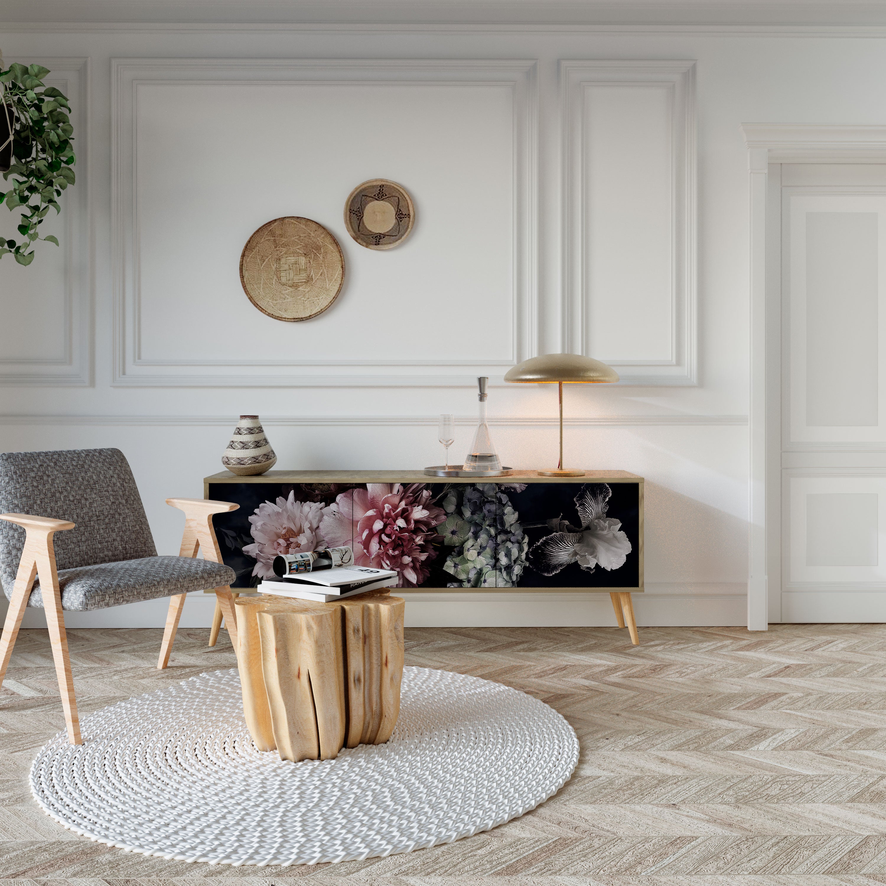 Mueble de TV de 3 puertas PURE BLOSSOM con efecto roble